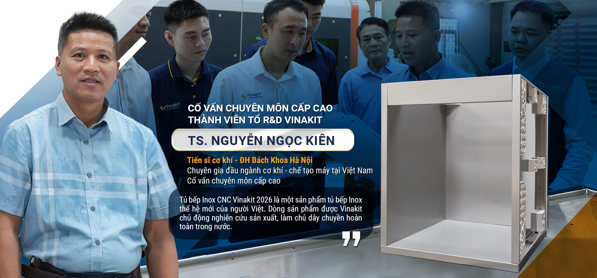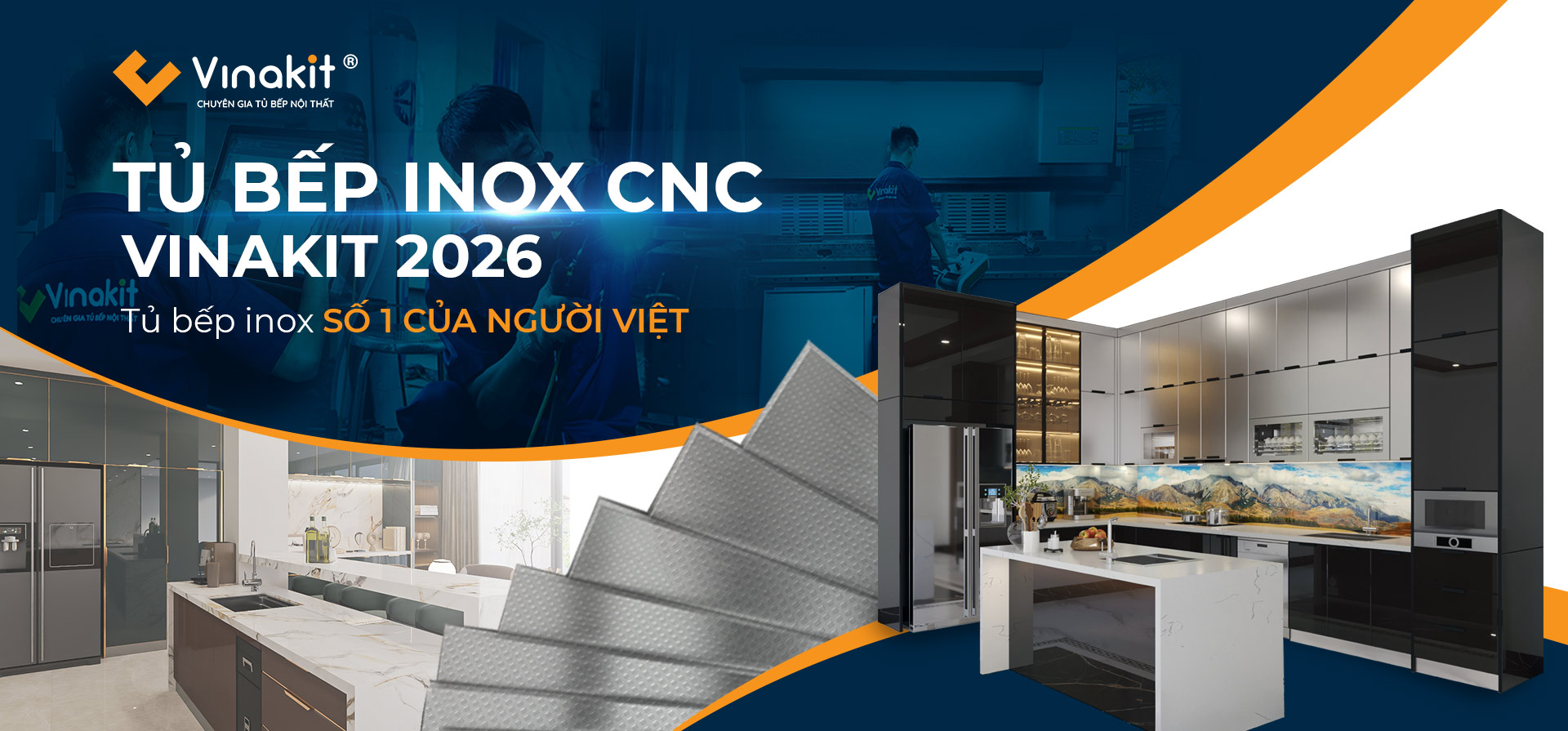 Nơi hội tụ đội ngũ chuyên gia trong lĩnh vực thiết kế, thi công tủ bếp. Tủ bếp inox Vinakit chất lượng số 1 nội địa, chiếm thị phần số 1 tại Việt Nam.