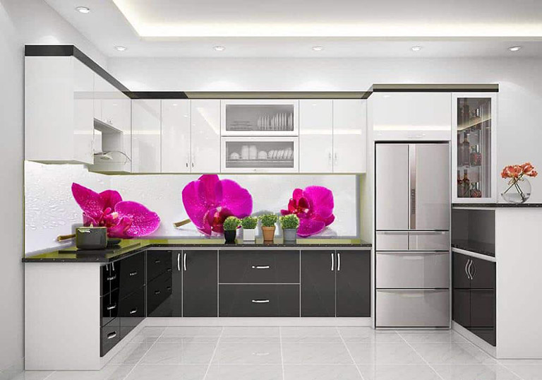 Kính ốp tủ bếp in 3D họa tiết độc đáo