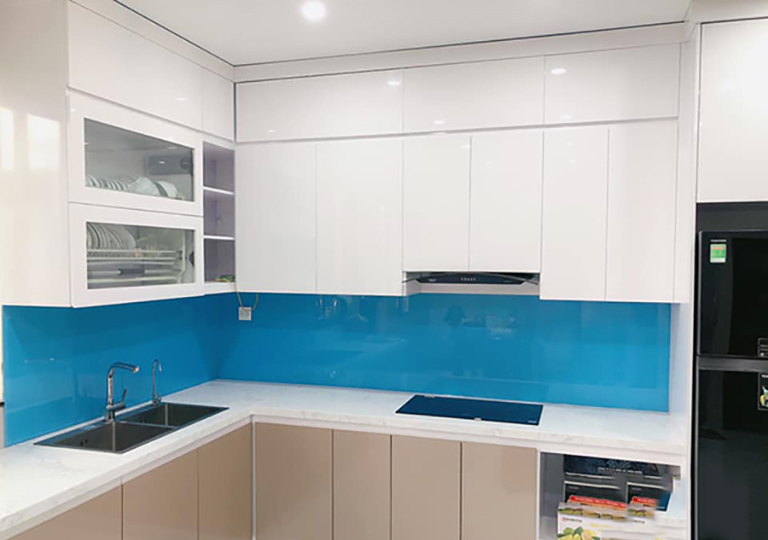 Nếu bạn đang tìm kiếm một sắc màu mang đến cảm giác mát mẻ và khác biệt cho căn bếp, thì kính ốp bếp màu xanh dương chắc chắn là lựa chọn lý tưởng. Gam màu này không chỉ tạo nên vẻ đẹp dịu mắt, dễ chịu mà còn giúp không gian trở nên nổi bật và cá tính hơn so với các tông màu truyền thống. Đặc biệt, xanh dương rất dễ phối hợp với phụ kiện và nội thất, mang lại tổng thể hài hòa, hiện đại và tràn đầy sức sống cho khu bếp của bạn.