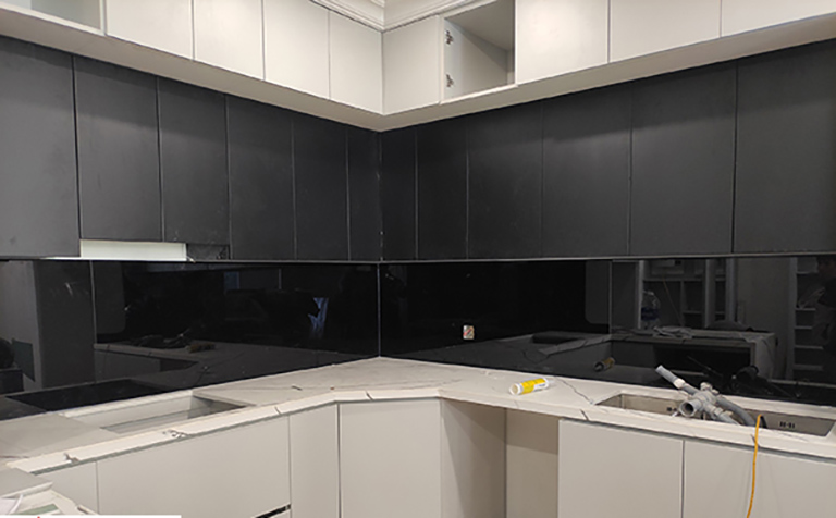 Kính ốp bếp màu đen kim sa