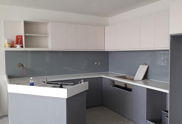 Kính ốp tủ bếp màu xám