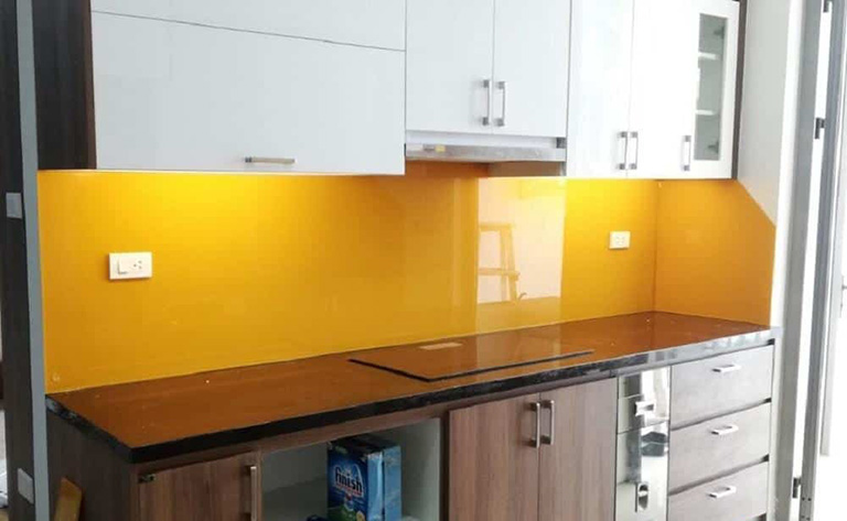 Kính ốp tủ bếp màu vàng