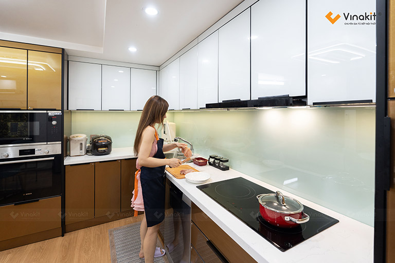 Đội ngũ kỹ thuật viên tại Vinakit luôn đảm bảo quy trình đo đạc, lắp đặt chuyên nghiệp, chính xác đến từng chi tiết, mang lại sự hoàn thiện chỉn chu và thẩm mỹ cao cho căn bếp. Ngoài ra, các sản phẩm kính ốp bếp tại Vinakit đều có nguồn gốc rõ ràng, được bảo hành chính hãng, đi kèm chính sách hỗ trợ tận tâm sau thi công. Nếu bạn đang tìm kiếm giải pháp kính ốp bếp vừa đẹp, vừa bền và chuẩn phong cách riêng, Vinakit chính là lựa chọn lý tưởng để bắt đầu.