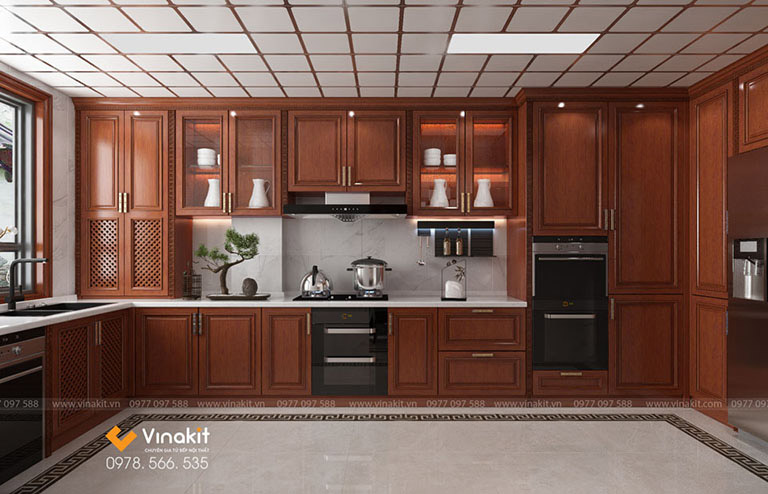 Tủ bếp gỗ gõ đỏ sang trọng và đẳng cấp
