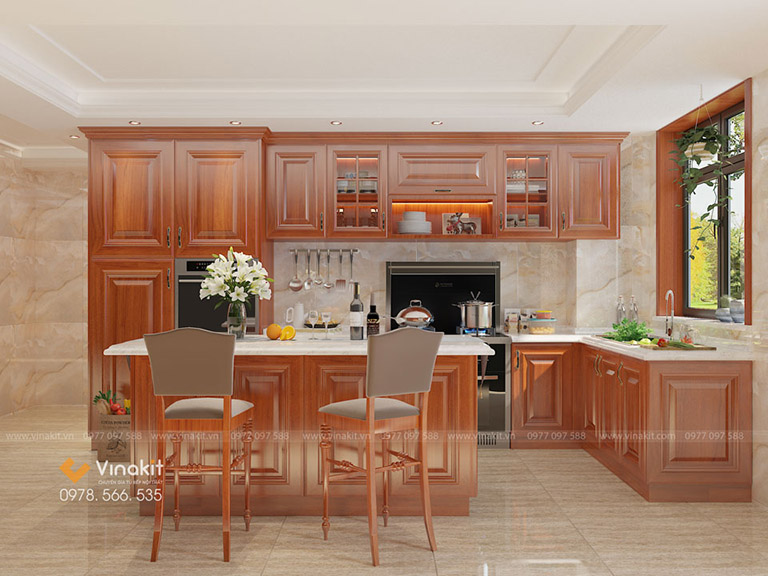 Báo giá tủ bếp gỗ tự nhiên tại Vinakit