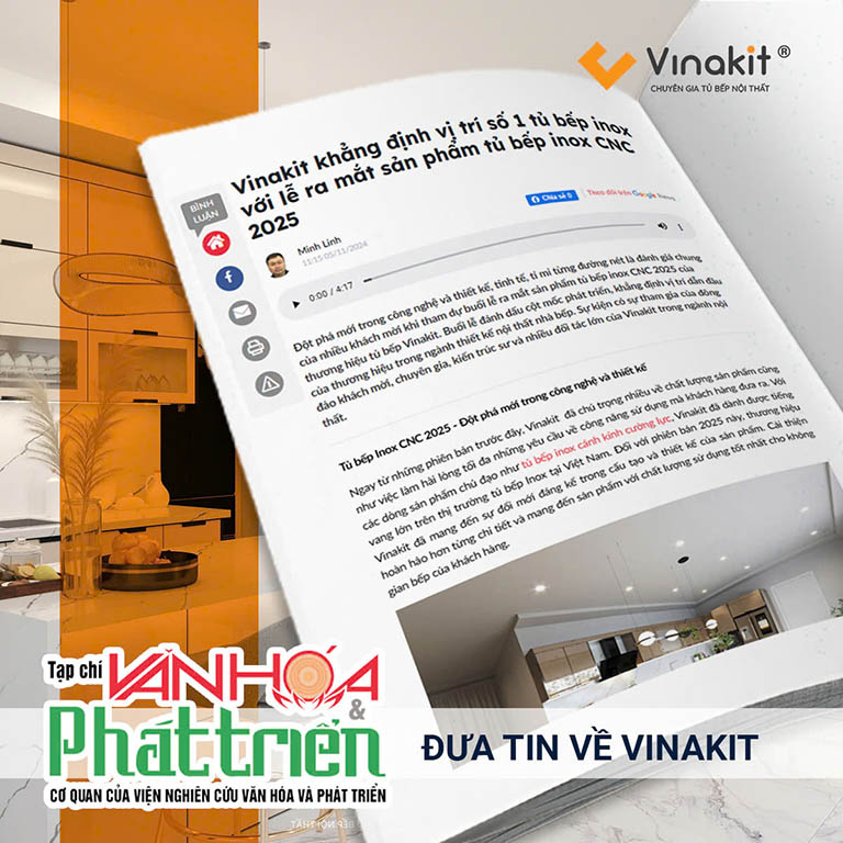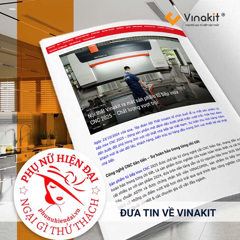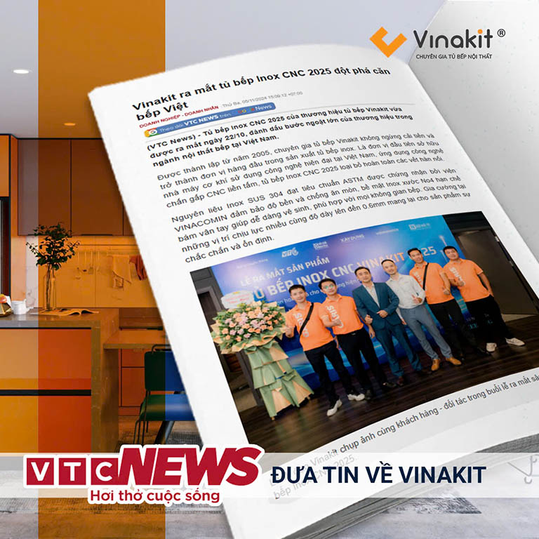 Báo VTC News đưa tin về sự kiện ra mắt tủ bếp Inox CNC 2025 của tập đoàn Vinakit. Đây là một trong những sự kiện cực kỳ quan trọng, đánh dấu bước ngoặt của thương hiệu trong ngành nội thất tủ bếp tại Việt Nam. Tại sự kiện, Vinakit đã cho ra đời dòng tủ bếp Inox được ứng dụng công nghệ chấn gấp CNC liền tấm, tủ bếp Inox CNC 2025 loại bỏ hoàn toàn các vết hàn nối. Sử dụng nguồn nguyên vật liệu SUS 304 theo tiêu chuẩn ASTM, được đánh giá bởi viện Vinacomin.