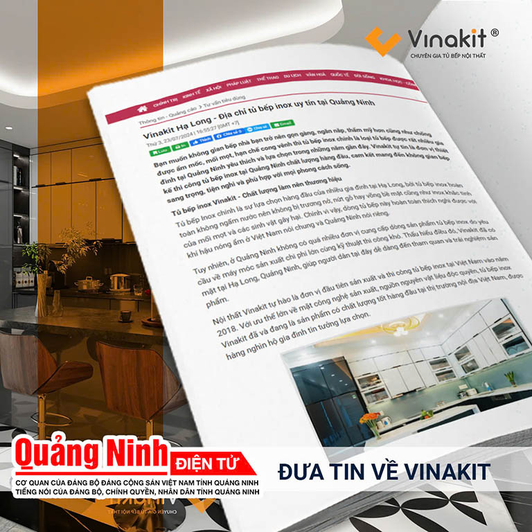Là đơn vị chuyên sản xuất tủ bếp inox chất lượng số 1 Việt Nam ở thời điểm hiện tại, Tập đoàn nội thất Vinakit ngày càng khẳng định vị thế vững chắc trên thị trường. Giữa muôn vàn đơn vị thi công, sản xuất tủ bếp với chất lượng tạp nham, Vinakit nổi bật nhờ quy trình sản xuất chuyên nghiệp, kiểm soát chất lượng nghiêm ngặt và sự đầu tư mạnh mẽ vào công nghệ. Uy tín của Vinakit không chỉ được khách hàng tin tưởng mà còn được ghi nhận bởi nhiều cơ quan truyền thông, các đơn vị báo chí đưa tin.