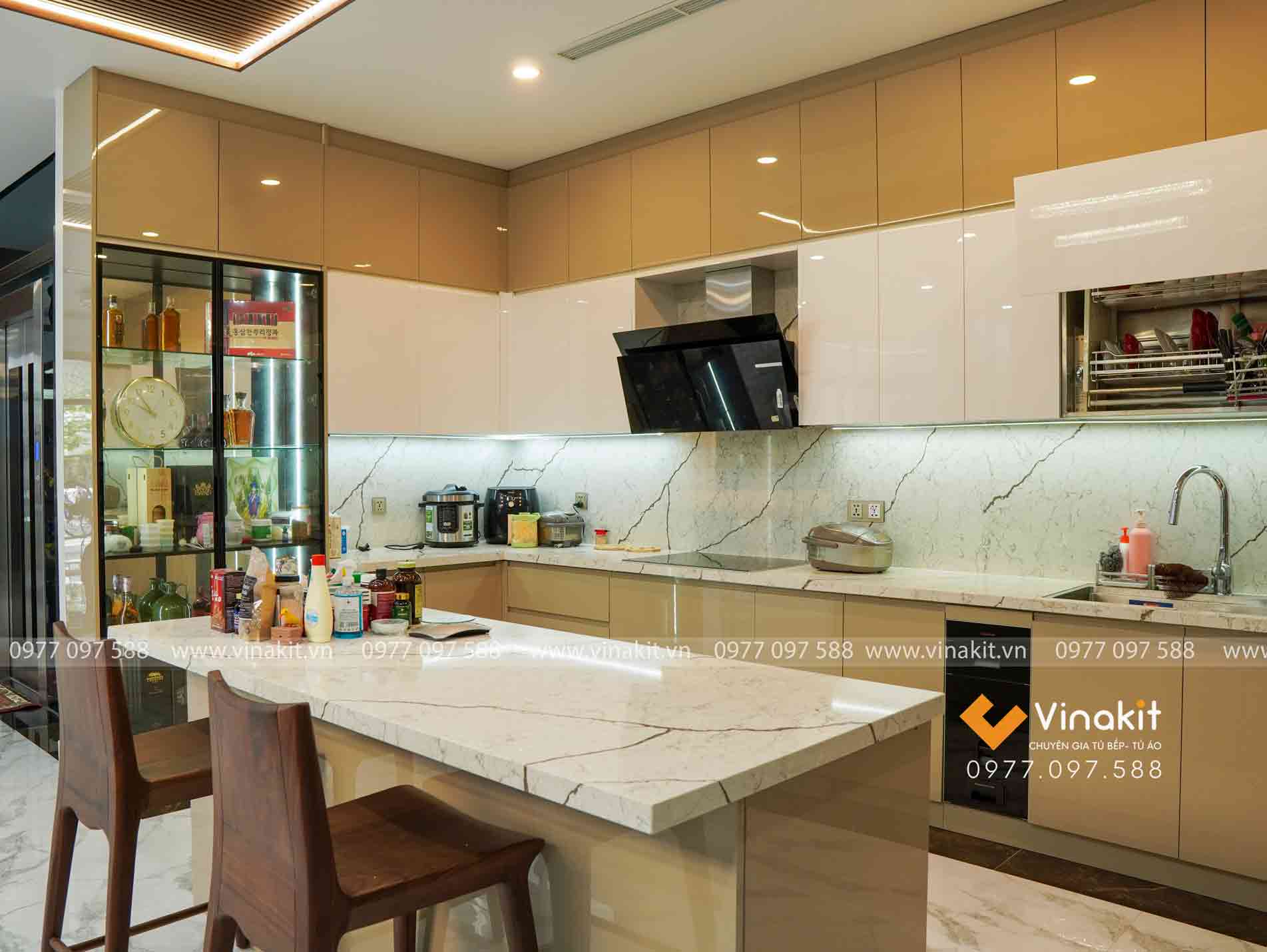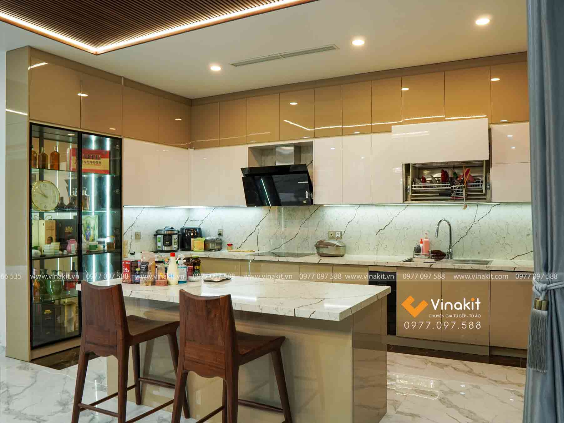 Mẫu tủ bếp inox cánh Acrylic do Vinakit thiết kế – sản xuất – lắp đặt theo yêu cầu anh Hùng, hãy để lại bình luận phía dưới cho Vinakit biết cảm nhận của anh chị về mẫu tủ bếp này nhé. Cần tư vấn “may đo” tủ bếp gọi ngay Vinakit để được tư vấn chi tiết. Hotline liên hệ:  0978 566 535 – 0977 097 588