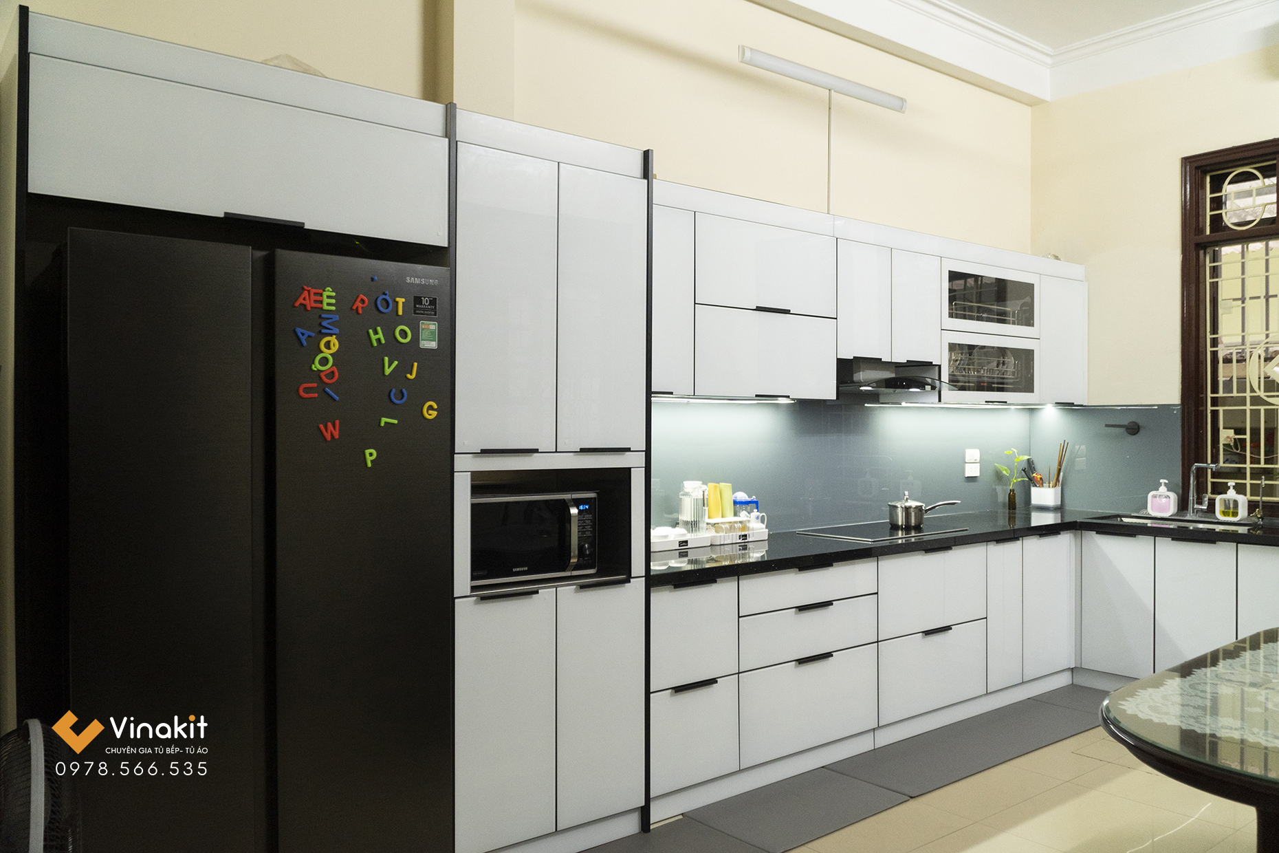 Mẫu tủ bếp inox cánh kính cường lực do Vinakit thiết kế – sản xuất – thi công lắp đặt tại nhà chú Vinh theo yêu cầu. Cần may đo tủ bếp theo yêu cầu phù hợp với diện tích mặt bằng và thói quen sinh hoạt của gia đình, gọi ngay Vinakit để được tư vấn chi tiết. Hotline liên hệ: 0978 566 535 – 0977 097 588
