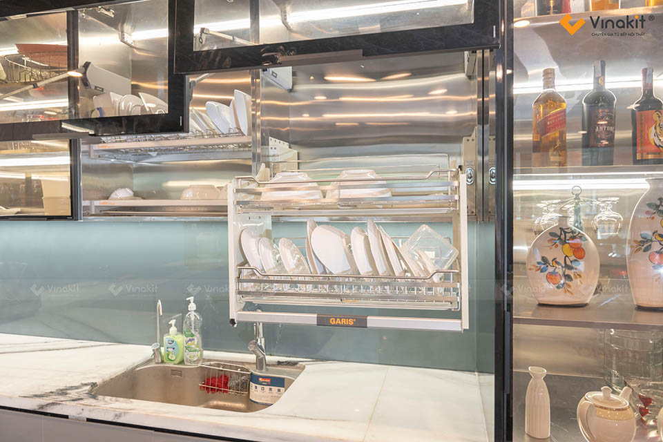 - Các phụ kiện tủ bếp: Giá bát đĩa nâng hạ, tay nâng Blum, giá dao thớt, giá gia vị, giá bát đĩa tủ dưới, giá xoong nồi tủ dưới, giá bát đĩa tủ bếp dưới, giá treo ly, cảm biến đền Led..