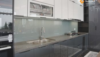 - Dự án: Công trình tủ bếp khung Inox 304, hệ modul rời – cánh kính cường lực Vinakit. Inox tấm dày 0.6mm sử dụng hệ module rời.