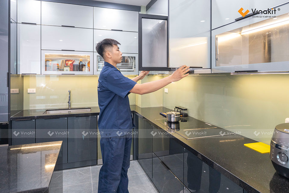 - Chính sách bảo hành – bảo trì số 1 thị trường: Vinakit khẳng định vị thế dẫn đầu với chính sách bảo hành 24h – hỗ trợ nhanh chóng chỉ trong một ngày. Tủ bếp được bảo hành từ 5 – 10 năm tùy hạng mục, kèm chế độ bảo trì trọn đời, giúp sản phẩm luôn bền đẹp theo thời gian.