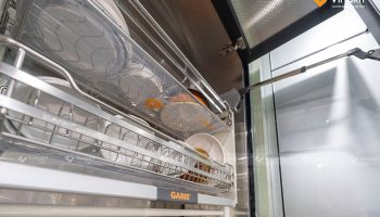 - Các hệ tủ kịch trần, tủ bếp dưới tiêu chuẩn, tủ nóc tủ lạnh, tủ thiết bị đều được làm từ khung Inox 304 hệ modul rời – Cánh kính cường lực Vinakit.