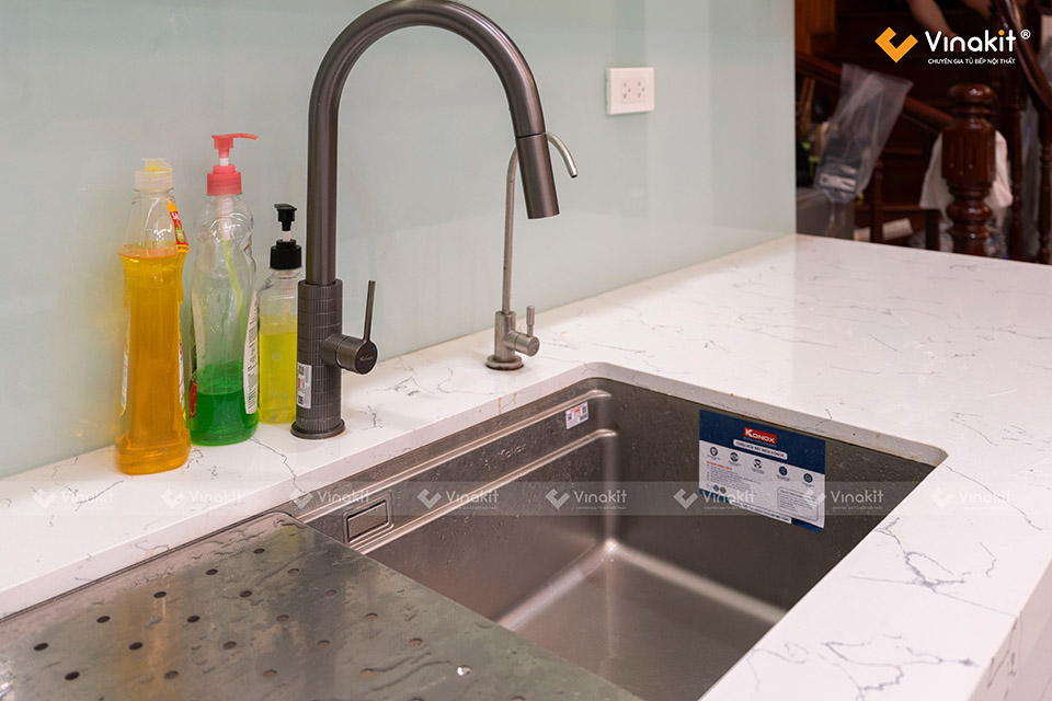 - Chính sách bảo hành – bảo trì số 1 thị trường: Vinakit khẳng định vị thế dẫn đầu với chính sách bảo hành 24h – hỗ trợ nhanh chóng chỉ trong một ngày. Tủ bếp được bảo hành từ 5 – 10 năm tùy hạng mục, kèm chế độ bảo trì trọn đời, giúp sản phẩm luôn bền đẹp theo thời gian.