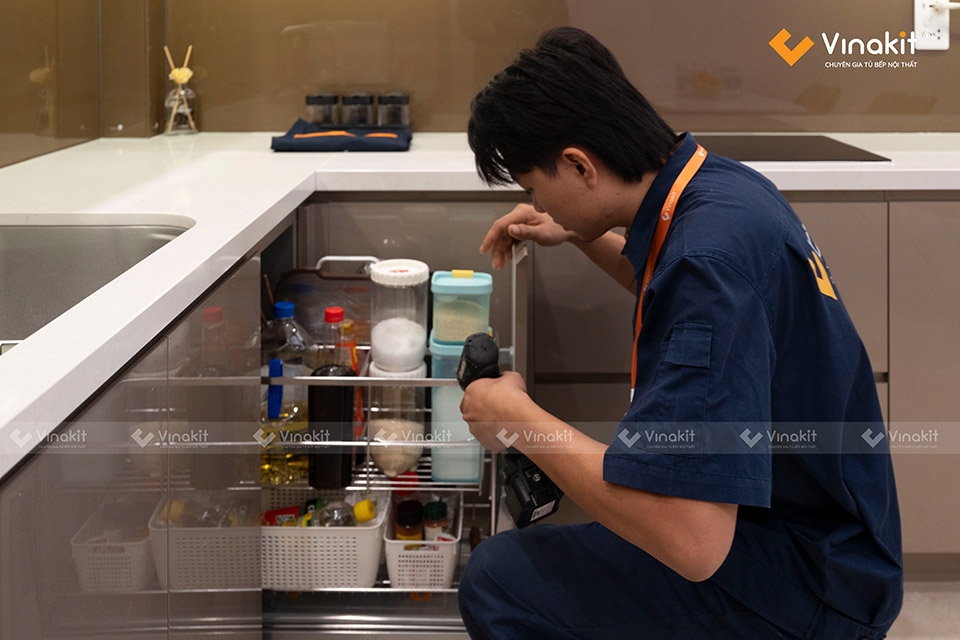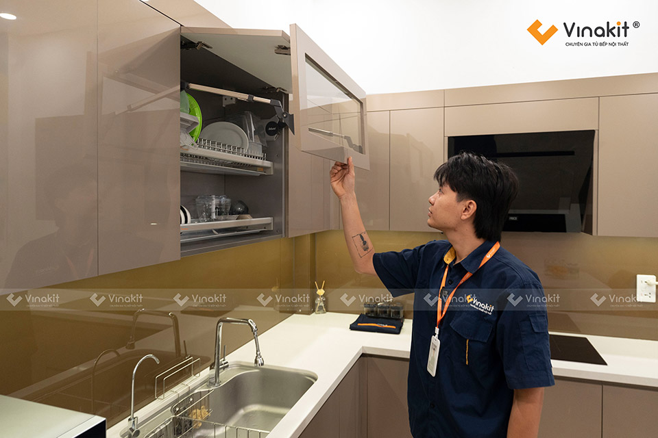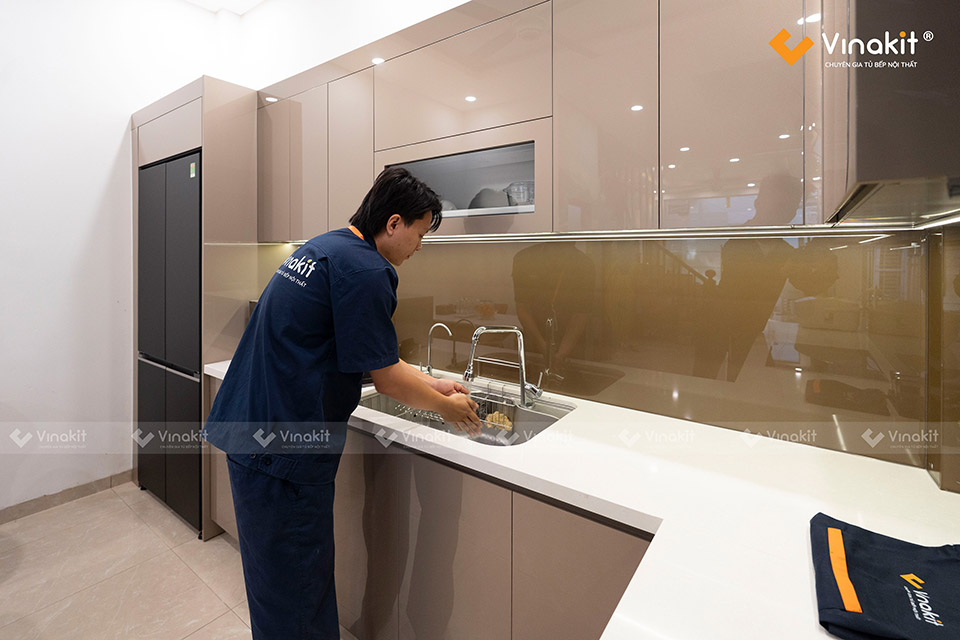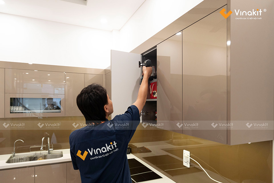 Sau khi nghiệm thu, khách hàng sẽ được hướng dẫn cách sử dụng, bảo quản và vệ sinh tủ bếp đúng cách để duy trì độ bền đẹp lâu dài. Đồng thời, Vinakit cũng kích hoạt chính sách bảo hành và bảo trì trọn đời, giúp khách hàng hoàn toàn yên tâm trong suốt quá trình sử dụng.