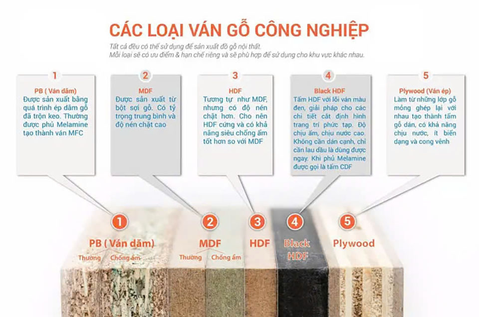 Hiện nay, có nhiều loại được sử dụng phổ biến trong sản xuất nội thất, có thể kể đến những loại như sau: