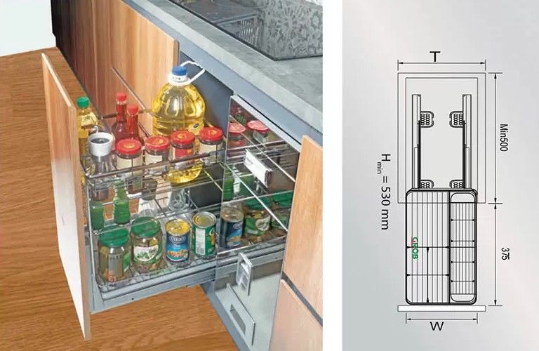 Phân loại và kích thước kệ gia vị tủ bếp chuẩn