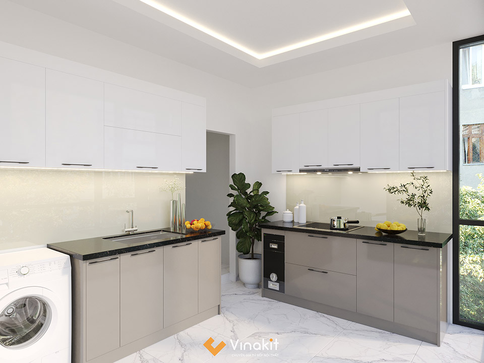 Mẫu tủ bếp gỗ công nghiệp cánh Acrylic Vinakit AV08