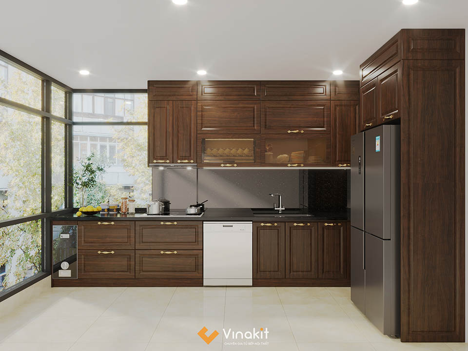 | Kiểu dáng | Tủ bếp chữ I kịch trần kết hợp bàn đảo |