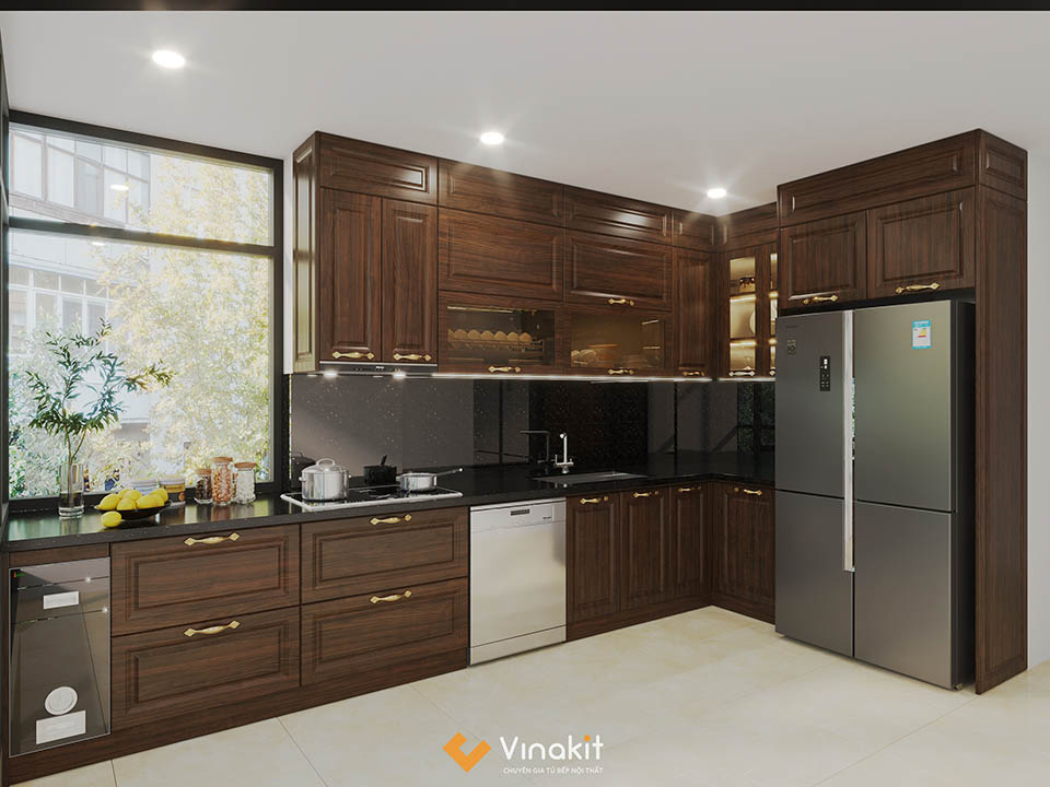 Ưu điểm nổi bật của tủ bếp gỗ óc chó Vinakit chữ L – OCC11