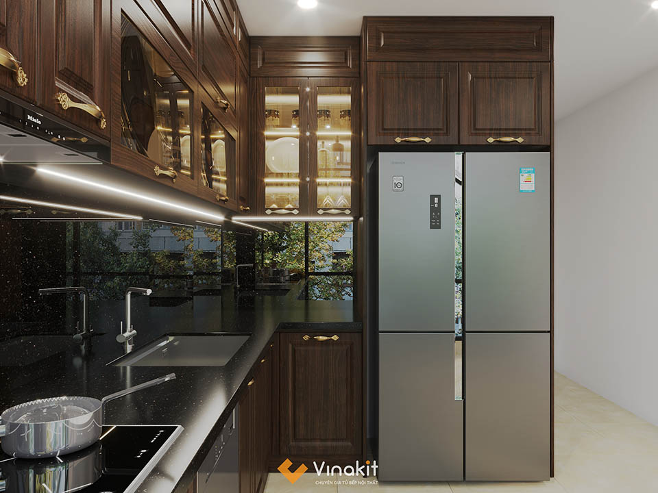 Mẫu tủ bếp gỗ óc chó Vinakit OCC11