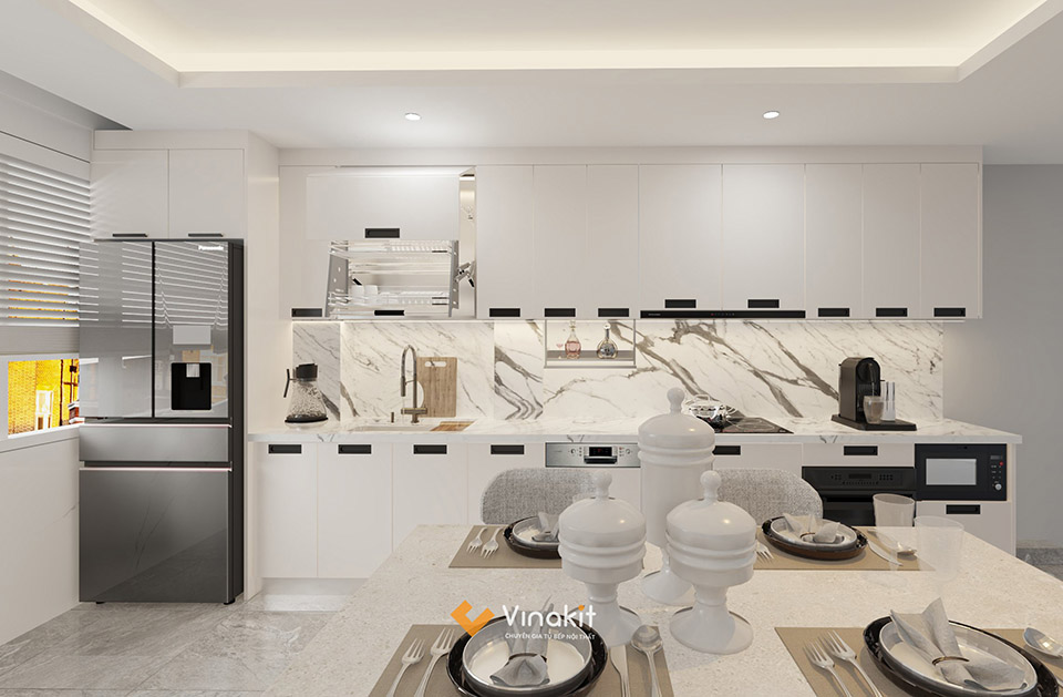 - Bộ tủ bếp thiết kế công năng thông minh theo yêu cầu phù hợp với thói quen sinh hoạt mang lại sự gọn gàng, ngăn nắp cho phòng bếp, sự tiện nghi tiện lợi trong quá trình sử dụng.