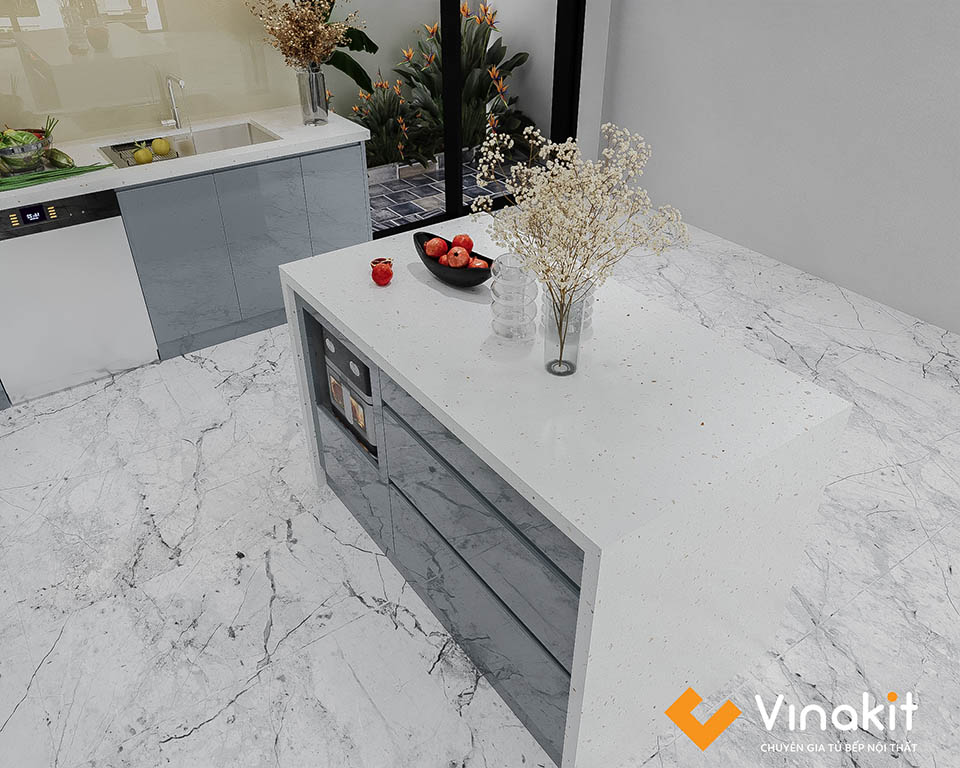 | Phụ kiện kèm theo | Giá bát di động, tay nâng Blum, ngăn kéo, giá dao thớt, giá gia vị … |