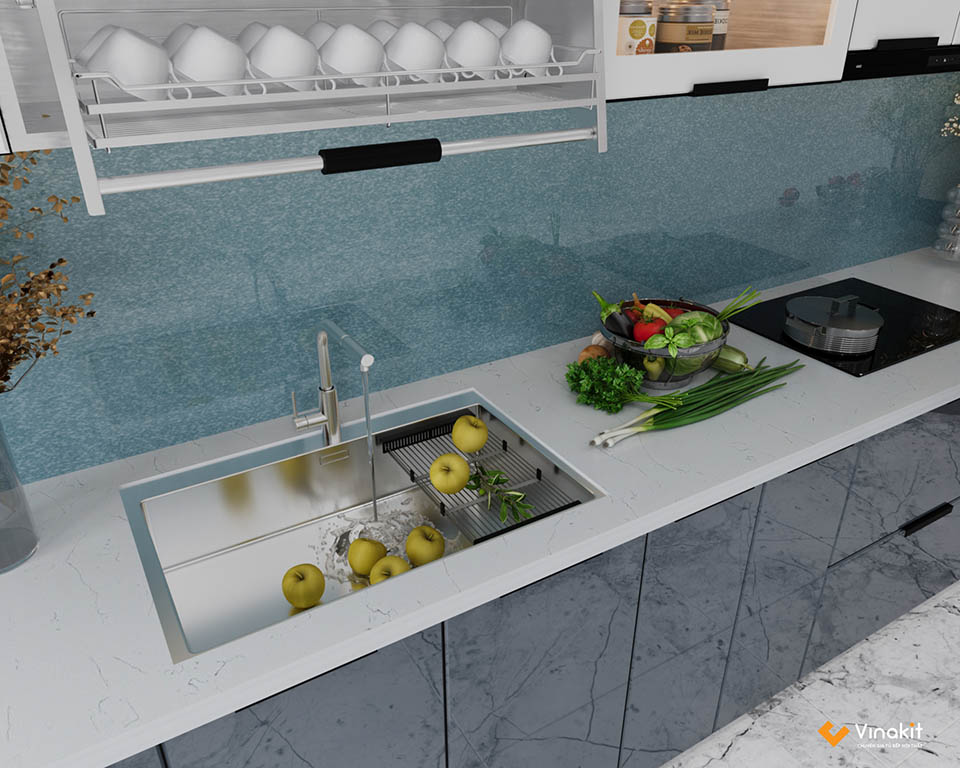 | Phụ kiện kèm theo | Giá bát di động, tay nâng Blum, ngăn kéo, giá dao thớt, giá gia vị … |