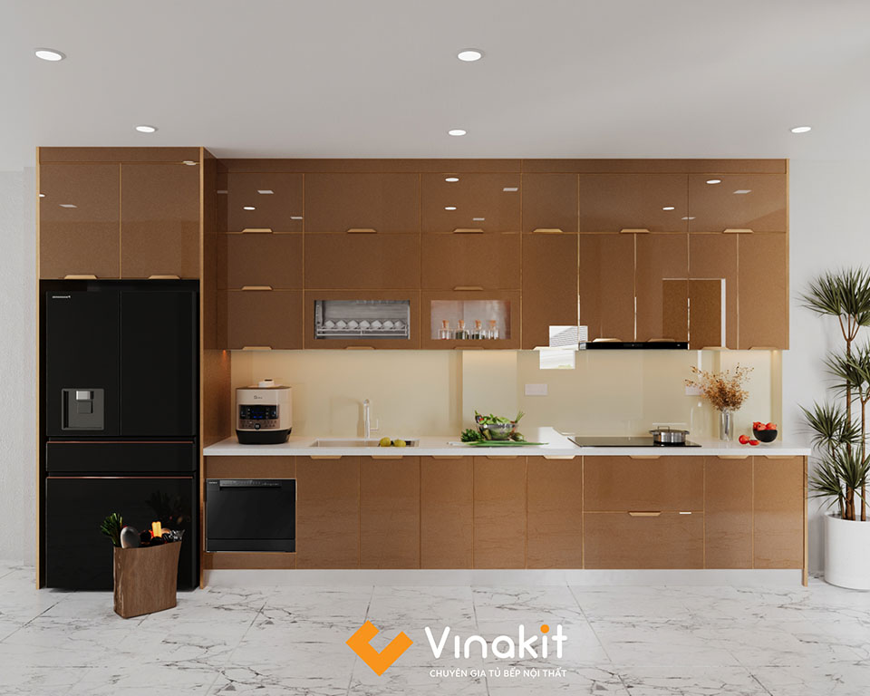 Với mẫu tủ bếp Inox cánh kính cường lực CK75 này, bạn sẽ được trải nghiệm một không gian nhà bếp hoàn toàn khác biệt. Sang trọng, hiện đại, đầy đủ công năng sử dụng. Cùng với đó là chất liệu cao cấp từ khung tủ đến cánh kính, mang đến hệ tủ bếp không chỉ đẹp mà còn vô cùng chất lượng. Với đội ngũ kiến trúc sư chuyên nghiệp của Vinakit, hệ tủ bếp CK75 thực sự là một lựa chọn hoàn hảo dành cho không gian bếp gia đình bạn.