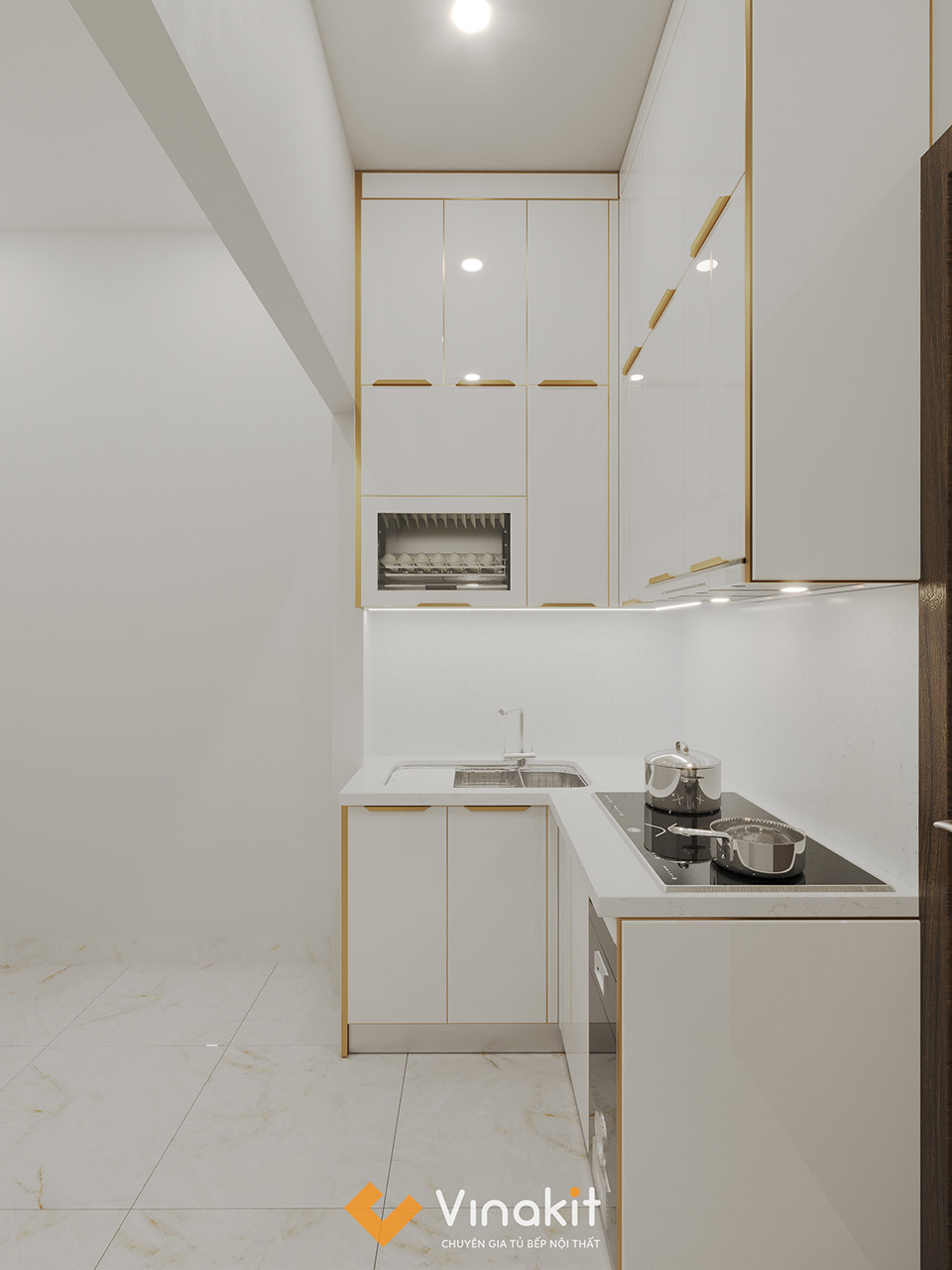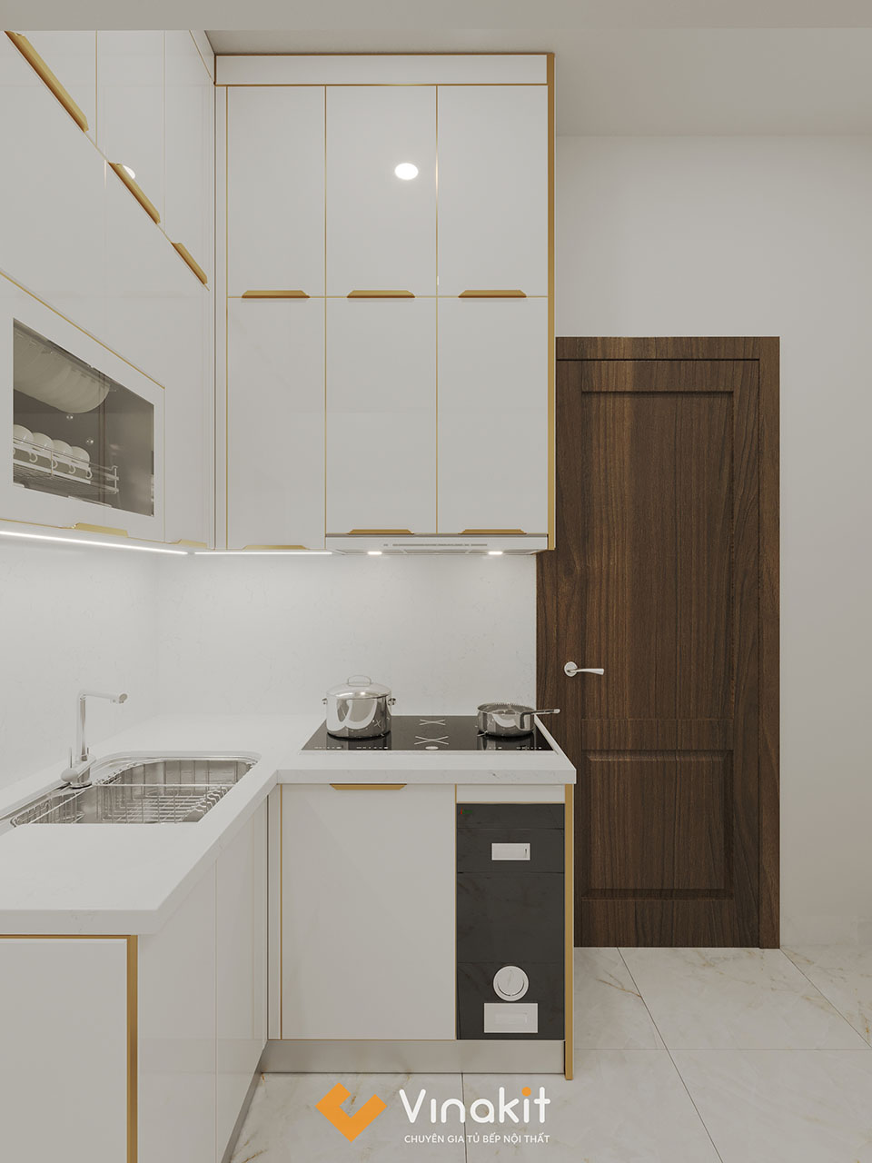 - Vật liệu sử dụng: Gỗ công nghiệp An Cường cao cấp. Tủ bếp kết hợp sử dụng Inox 304 CNC Vinakit 2025 – cánh kính cường lực.