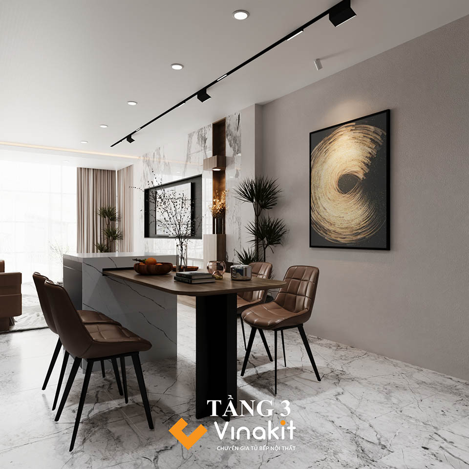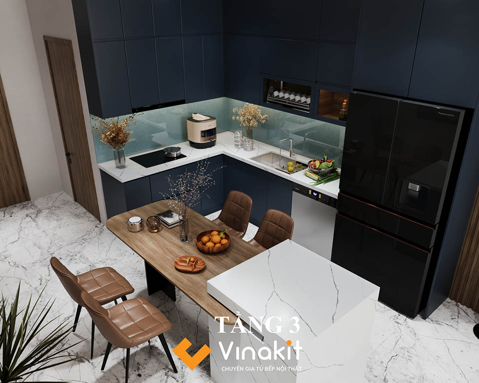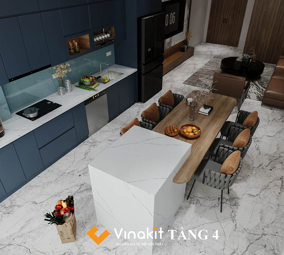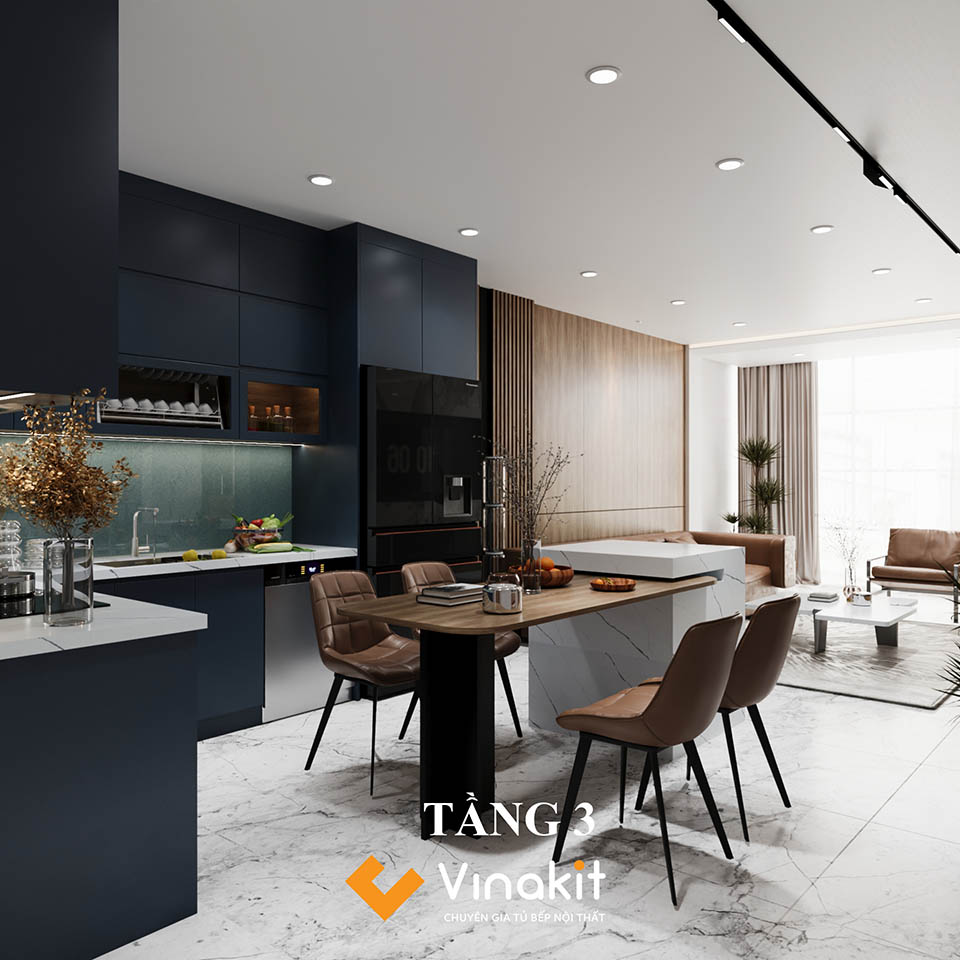 - Bộ nội thất nhà liền kề gồm 2 tầng bếp khách được Vinakit thiết kế – sản xuất – thi công lắp đặt theo yêu cầu, phù hợp với mặt bằng thực tế, đáp ứng được mọi yêu cầu của gia đình về tính thẩm mỹ, công năng tiện nghi trong quá trình sinh hoạt sử dụng.