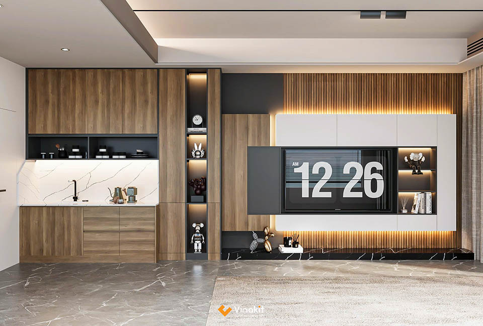 - Bộ nội thất được Vinakit thiết kế – sản xuất – thi công lắp đặt theo yêu cầu, phù hợp với mặt bằng thực tế, đáp ứng được mọi yêu cầu của gia đình về tính thẩm mỹ , công năng tiện nghi trong quá trình sinh hoạt sử dụng.