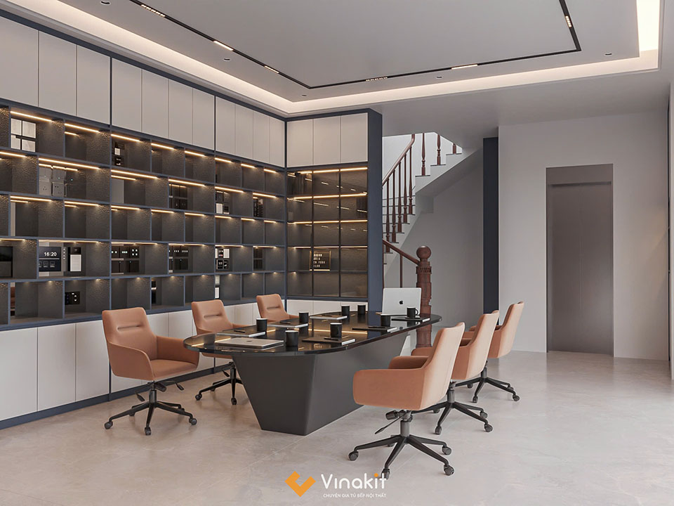 Bộ nội thất nhà phố NTNP18 được Vinakit thiết kế độc quyền theo nhu cầu của khách hàng. Văn phòng làm việc sử dụng chất liệu gỗ công nghiệp An Cường chính hãng, 100% đảm bảo hàng chất lượng cao, có giấy tờ chứng nhận và cam kết. Thiết kế sang trọng hiện đại mang đến không gian phòng làm việc chuyên nghiệp.