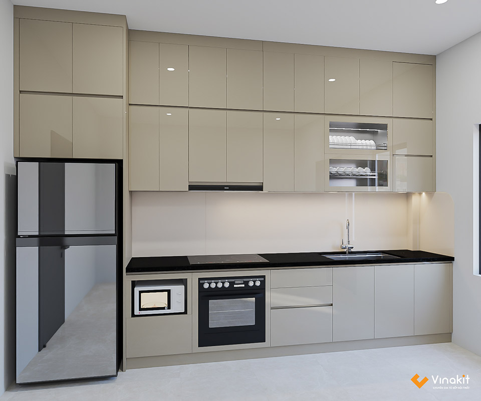 - Kích thước và màu sắc tủ bếp tùy chỉnh: Bộ tủ bếp nhựa cánh AcrylicAC20 được thiết kế tùy chỉnh bởi các thiết kế Vinakit. Khách hàng có thể lựa chọn màu sắc và thay đổi kích cỡ đề phù hợp với sở thích cá nhân và không gian căn nhà của mình.