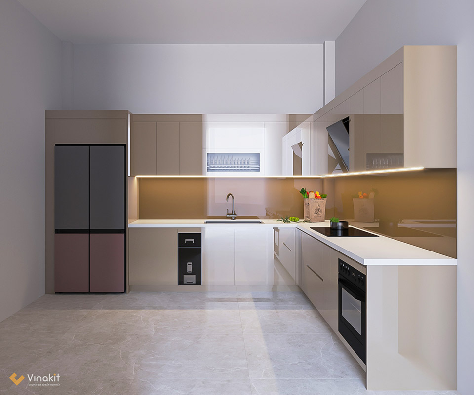 - Kích thước và màu sắc tủ bếp tùy chỉnh: Bộ tủ bếp nhựa cánh AcrylicAC23 được thiết kế tùy chỉnh bởi các thiết kế Vinakit. Khách hàng có thể lựa chọn màu sắc và thay đổi kích cỡ đề phù hợp với sở thích cá nhân và không gian căn nhà của mình.