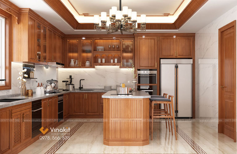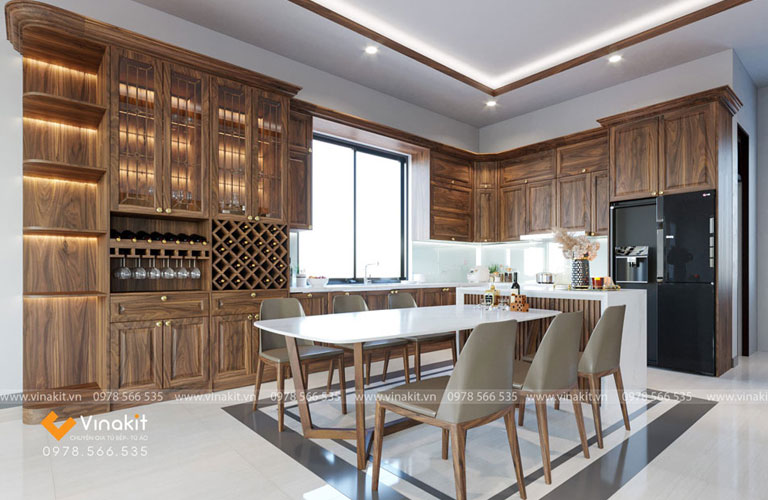 Với đội ngũ kiến trúc sư và kỹ thuật viên có trình độ cao, Vinakit mang đến các mẫu tủ bếp gỗ tối ưu từ thiết kế hiện đại đến phong cách tân cổ điển sang trọng, luôn đáp ứng tốt cả về thẩm mỹ, công năng và độ bền. Sản phẩm được sản xuất tại xưởng riêng, kiểm soát chặt chẽ từ khâu chọn gỗ đến hoàn thiện, đảm bảo đúng tiến độ và ngân sách.
