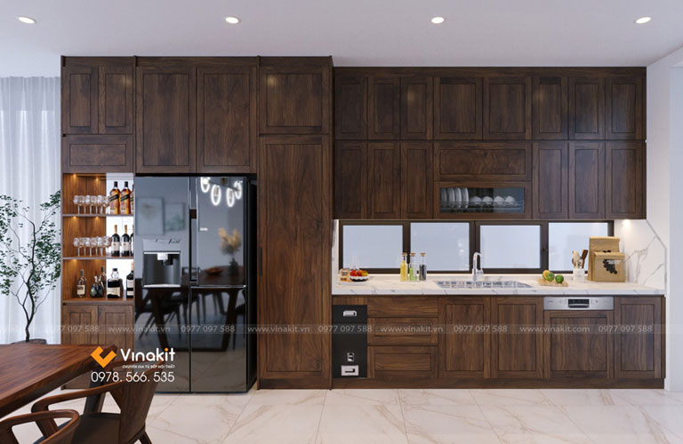 Vinakit là một trong những đơn vị thiết kế và thi công tủ bếp gỗ chất lượng cao tại Việt Nam. Tại Vinakit, khách hàng sẽ được tư vấn về kiểu dáng, chất liệu phù hợp với phong cách tổng thể của ngôi nhà, mà vẫn đảm bảo công năng cũng như tính thẩm mỹ.