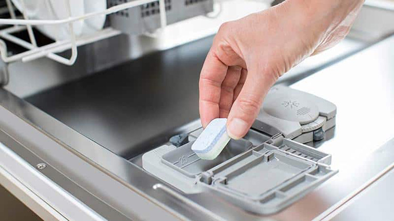 6. Sử dụng viên rửa, muối và nước làm bóng đúng liều lượng: Dùng sản phẩm chuyên dụng chất lượng và đúng định mức giúp máy rửa sạch hiệu quả hơn, tránh lãng phí và bảo vệ máy.