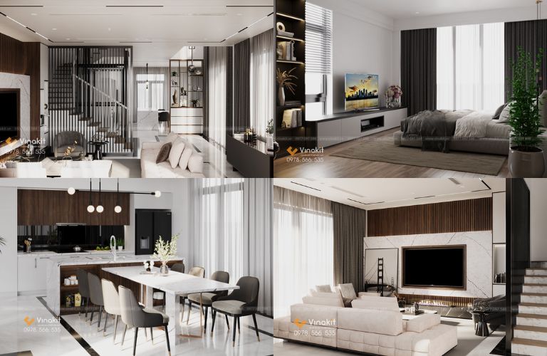 - Dịch vụ trọn gói, tiện lợi: Vinakit cung cấp dịch vụ thiết kế và thi công nội thất trọn gói, giúp khách hàng tiết kiệm thời gian và chi phí. Chúng tôi hỗ trợ từ bước tư vấn, khảo sát, thiết kế 3D, sản xuất đến thi công và bàn giao công trình hoàn thiện.