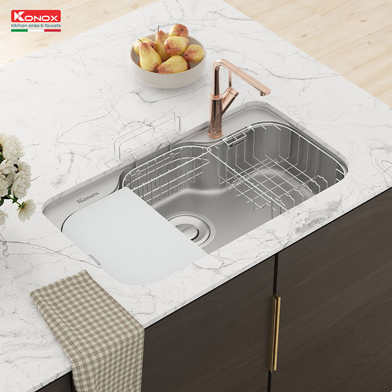 Sản phẩm thiết bị bếp này tích hợp bộ phụ kiện tiện lợi, dễ sử dụng, đáp ứng nhu cầu sử dụng bồn rửa cơ bản. Sản phẩm với độ sáng bóng bền màu cùng tính chống oxy hóa cao, chất liệu inox 304 mang đến sự an toàn cao cho sức khỏe người sử dụng.