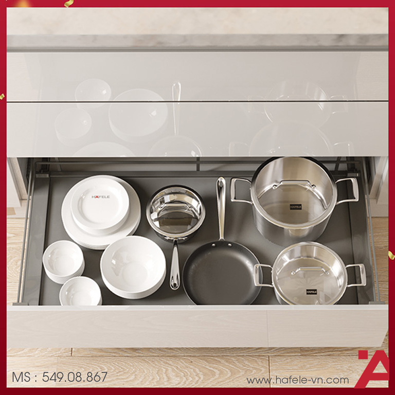 - Thiết kế dạng ngăn kéo kín đáo giúp giấu gọn các dụng cụ nấu ăn. Mang đến sự ngăn nắp cho căn bếp.