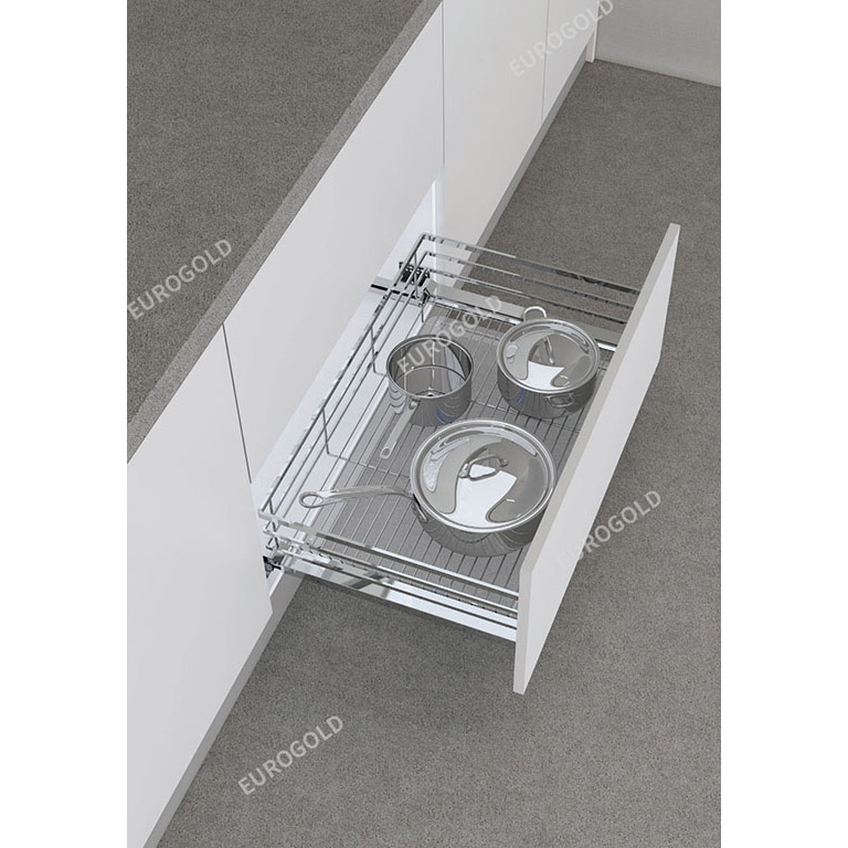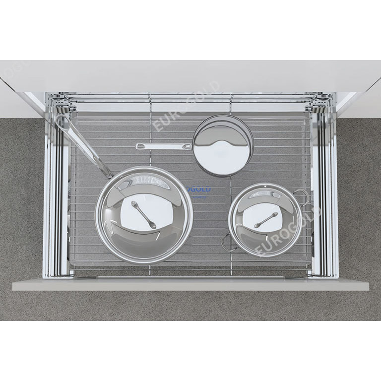 Nếu bạn đang tìm một phụ kiện tủ bếp đáp ứng các tiêu chỉ về chất lượng, độ bền, công năng sử dụng. Chắc chắn hãy lựa chọn sản phẩm giá xoong nồi tủ dưới này của Eurogold. Với nhiều khoang trông thông minh. Giúp sắp xếp gọn gàng xoong nồi và tìm kiếm một cách nhanh chóng hơn.