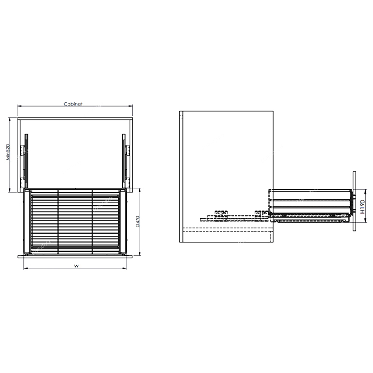 - Chỉ với thao tác kéo nhẹ cánh tủ, bạn có thể dễ dàng nhìn thấy toàn bộ giá. Giúp việc sắp xếp và sử dụng xoong nồi bát đĩa trở nên dễ dàng hơn.