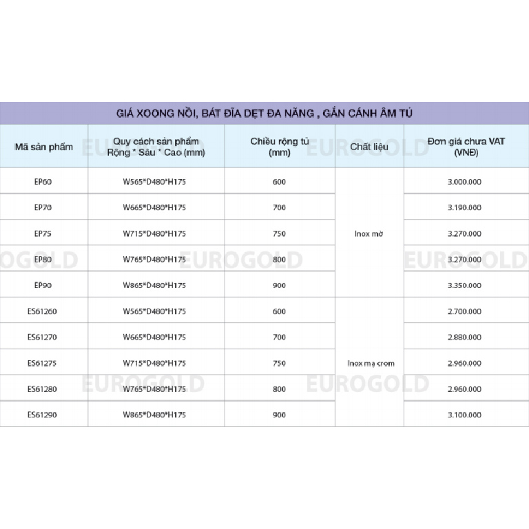 - Eurogold là thương hiệu phụ kiện tủ bếp cao cấp, được nhiều gia đình tin dùng.