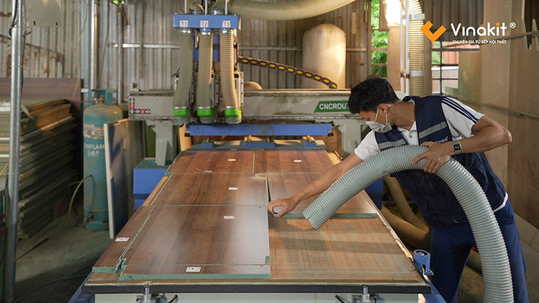 Khác với nhiều đơn vị thi công nội thất phòng thờ khác, Vinakit sở hữu nhà máy sản xuất riêng quy mô lớn với hệ thống máy móc CNC hiện đại, đặt tại khu công nghiệp phía Bắc. Điều này giúp chúng tôi chủ động toàn bộ quy trình sản xuất, từ chọn lọc nguyên liệu (gỗ tự nhiên, gỗ công nghiệp cao cấp) đến gia công, sơn phủ, chạm khắc – tất cả đều được kiểm soát chất lượng nghiêm ngặt trước khi đưa đến tay khách hàng. Không thông qua trung gian nên sản phẩm của Vinakit luôn đảm bảo giá thành hợp lý, đồng thời có thể cá nhân hóa theo yêu cầu riêng của từng gia chủ.