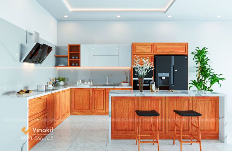 | Tủ bếp gỗ gõ Vinakit GG06 chữ U cổ điển | Tủ bếp gỗ hương Vinakit chữ U – GH10 |
