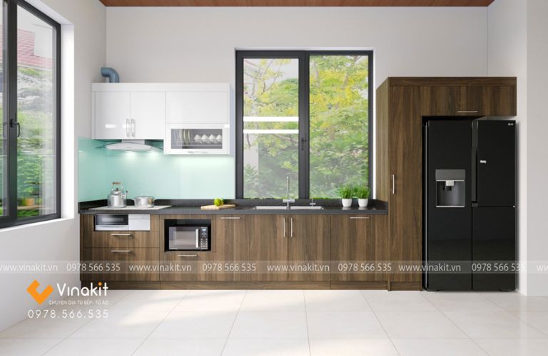 Bên cạnh đó, tủ bếp chữ I có khả năng linh hoạt về chất liệu và phong cách thiết kế. Tủ có thể được làm từ gỗ công nghiệp, gỗ tự nhiên hoặc nhựa cao cấp, kết hợp đa dạng màu sắc và bề mặt hoàn thiện. Khi được bố trí hợp lý, kết hợp hệ tủ trên – tủ dưới cùng các phụ kiện bếp thông minh, tủ bếp chữ I vẫn đảm bảo đầy đủ công năng, đáp ứng tốt nhu cầu nấu nướng và lưu trữ trong không gian bếp hiện đại tại Hà Nội.
