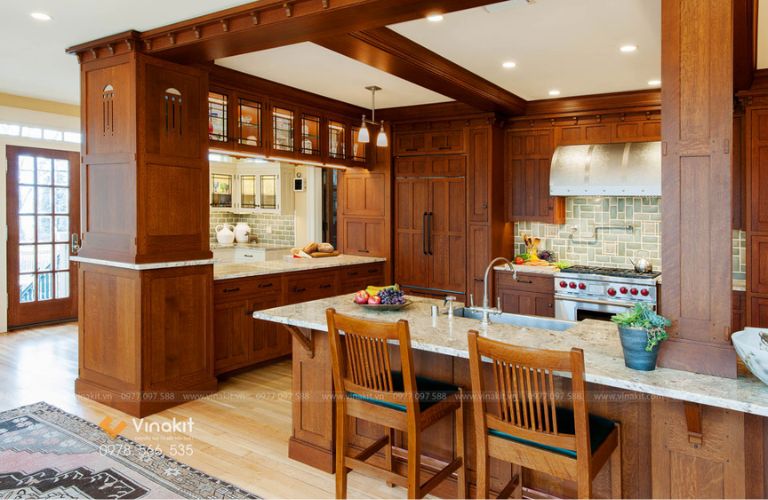 - 10 Mẫu tủ bếp gỗ gõ đỏ phong cách tân cổ điển đẹp nhất