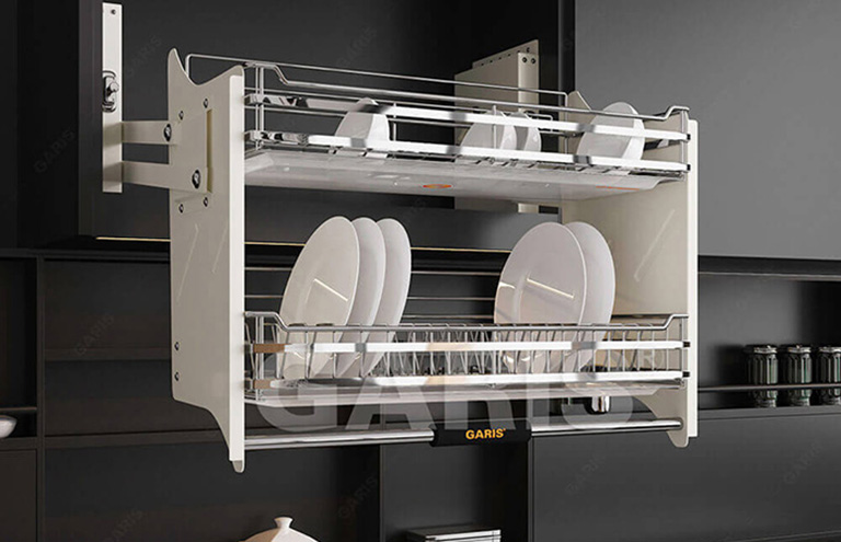 - Xác định vị trí lắp đặt: Giá bát cố định trong tủ bếp trên: Phù hợp với tủ bếp có thiết kế cánh mở phía trên, giúp tiết kiệm không gian và giữ thẩm mỹ. Giá bát nâng hạ: Tiện lợi cho người dùng, đặc biệt là người già hoặc có chiều cao khiêm tốn, giúp lấy/để bát đĩa dễ dàng hơn.