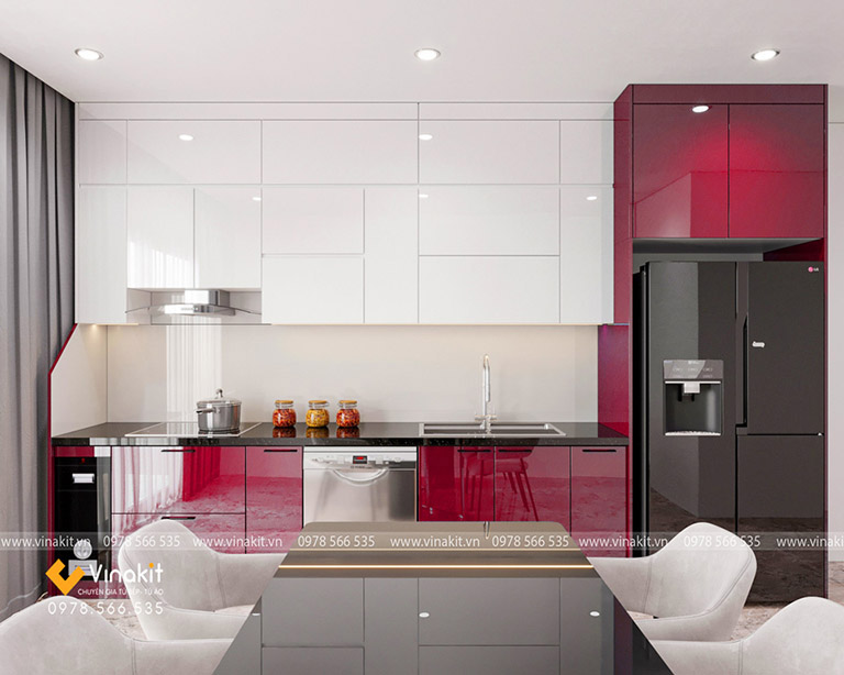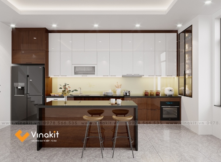 Vinakit được biết đến là một trong những đơn vị thiết kế thi công tủ bếp uy tín chất lượng hàng đầu hiện nay, mang đến cho khách hàng những sản phẩm sang trọng, tiện nghi và bền vững theo thời gian. Điểm mạnh nổi bật của Vinakit nằm ở sự đa dạng về vật liệu: từ gỗ công nghiệp An Cường với độ bền cao, cánh Acrylic bóng gương hiện đại, Laminate vân gỗ ấm áp, cho đến inox cánh kính thời thượng – tất cả đều được sản xuất trực tiếp tại nhà máy của Vinakit bằng dây chuyền công nghệ tiên tiến. Điều này giúp kiểm soát chặt chẽ chất lượng, đảm bảo từng sản phẩm khi đến tay khách hàng đều đạt chuẩn về độ bền, tính thẩm mỹ và công năng sử dụng.